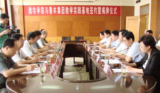 2015年7月,濰坊學(xué)院與魯豐集團教學(xué)實(shí)踐基地簽約暨揭牌儀式在公司會(huì )議室舉行,成立教學(xué)實(shí)踐基地,為公司輸送高素質(zhì)、高水平的專(zhuān)業(yè)技術(shù)人才,搭建了人才培養的“直通車(chē)”,將大幅提升企業(yè)核心競爭力,進(jìn)一步提高企業(yè)專(zhuān)業(yè)技術(shù)水平。